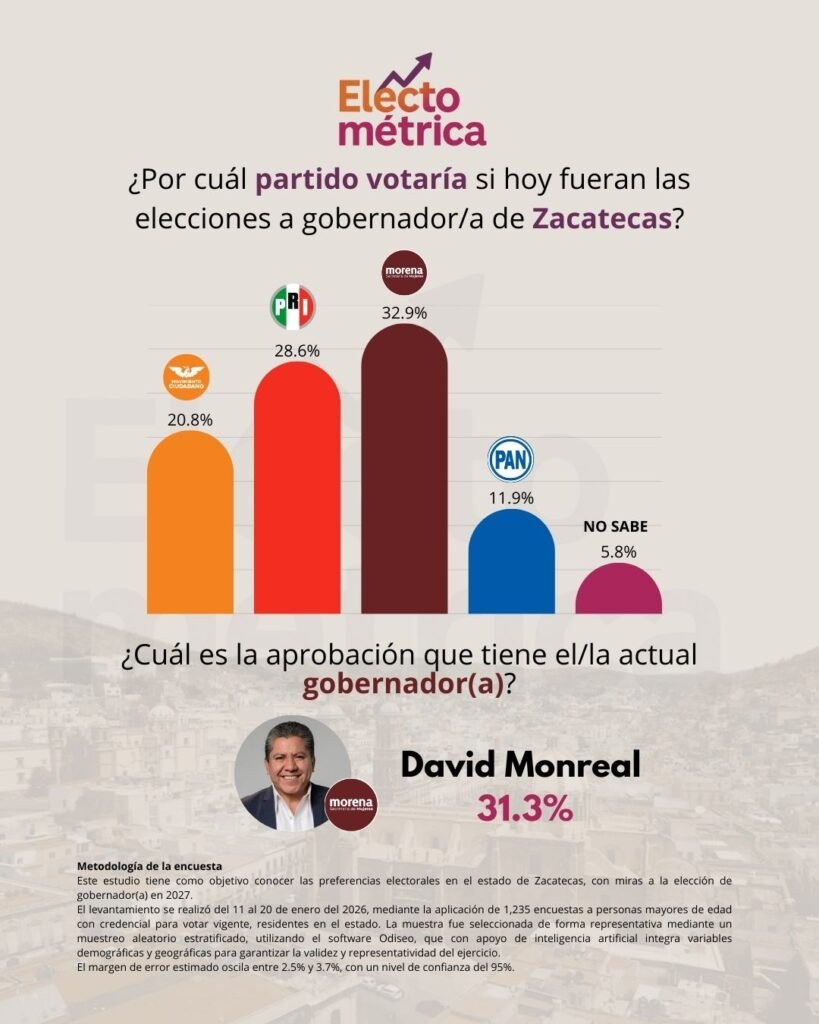 - Capacidad de Unión: Ante un electorado que busca alternativas, el PRI en Zacatecas se presenta como el eje articulador que podría unificar el voto opositor, el cual, de sumarse, superaría ampliamente al oficialismo.